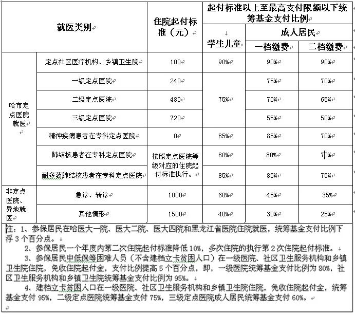 一、 哈尔滨市城乡居民医保待遇